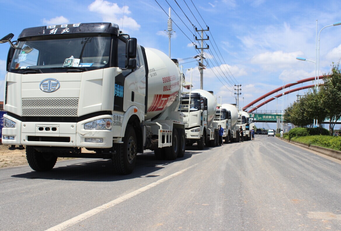 2014年7月17日下午,10臺(tái)嶄新的攪拌車齊聚趙龍重工義烏生產(chǎn)基地廠區(qū)大門整裝待發(fā),即將發(fā)往湖南長(zhǎng)沙市西城偉業(yè)混凝土有限公司。